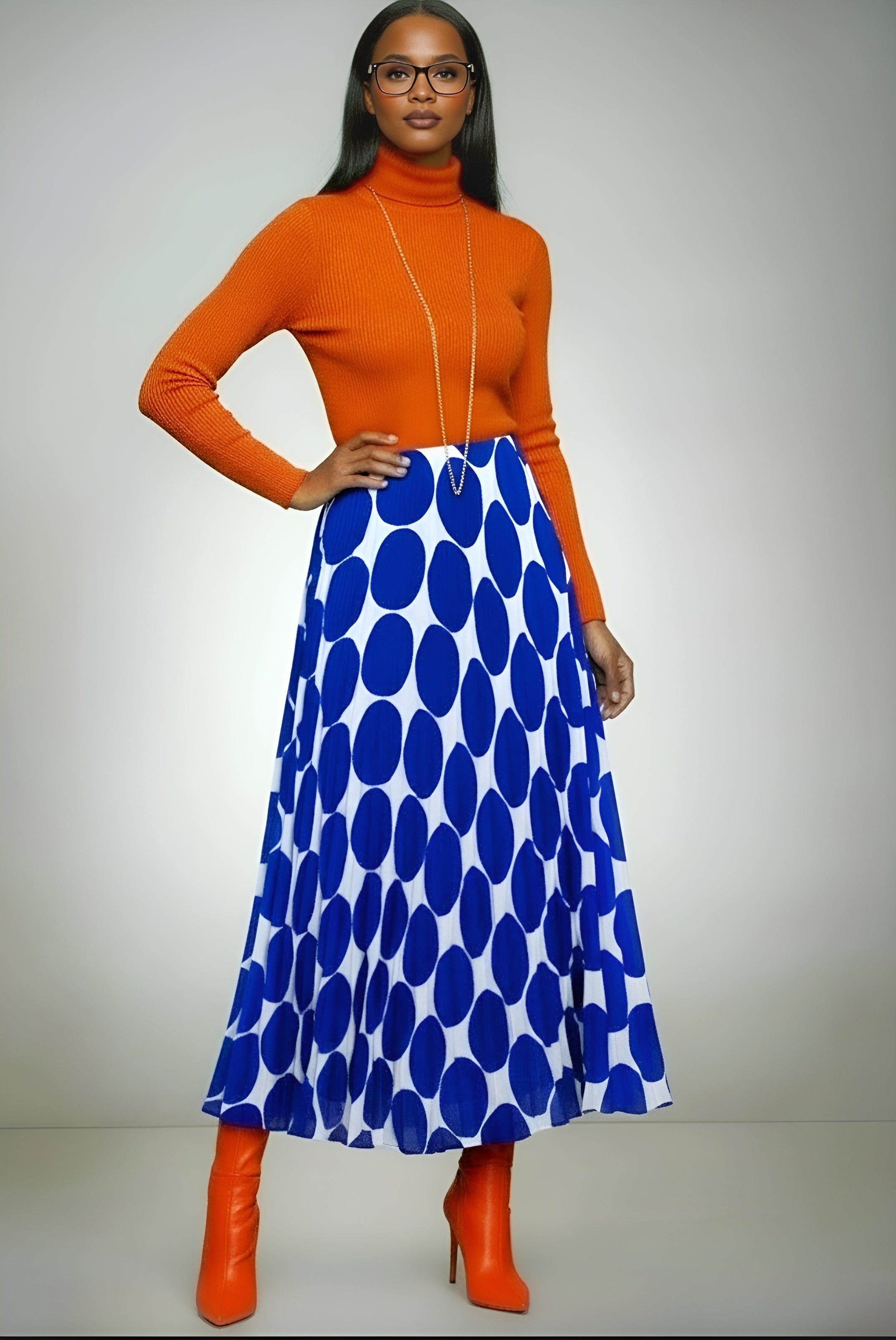 Pleated polka dot skirt - Royal and White with Stretch Elastic Waist