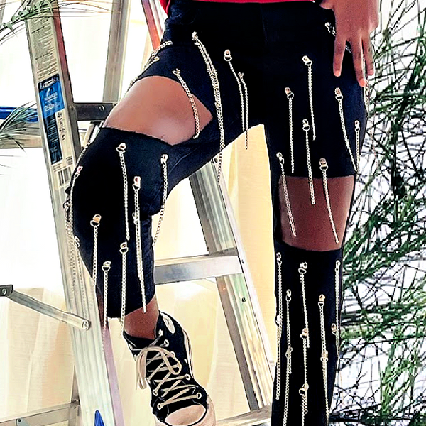 Fringe Chain- Ripped Denim